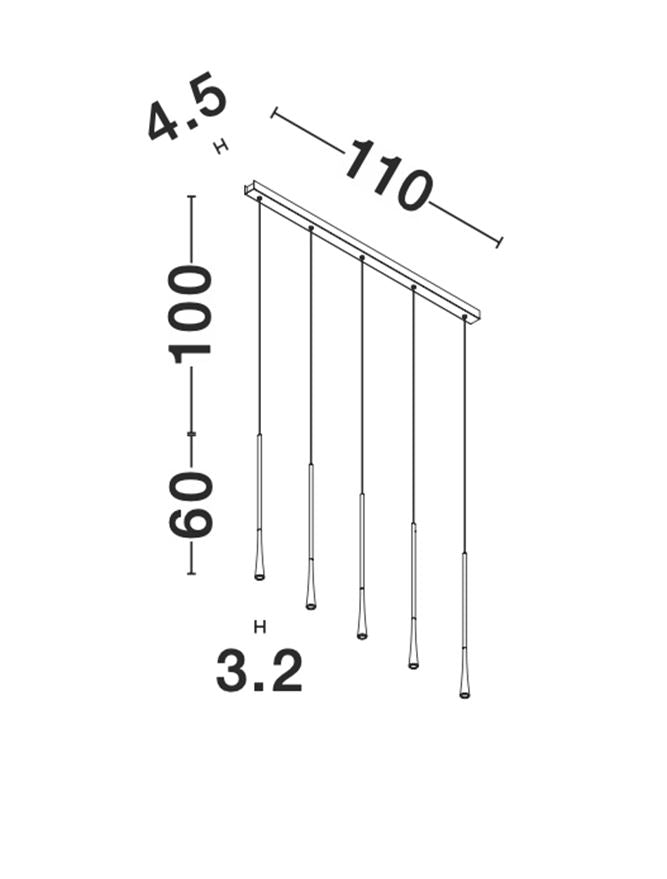 Dimensiuni: L: 110 cm, W: 4.5 cm, H1: 60 cm, H2: 160 cm