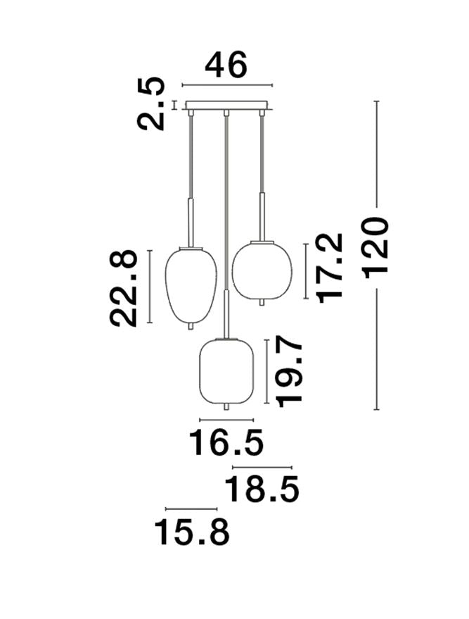 Lampa suspendata LATO 3 Smoky Glass Black NOVA LUCE