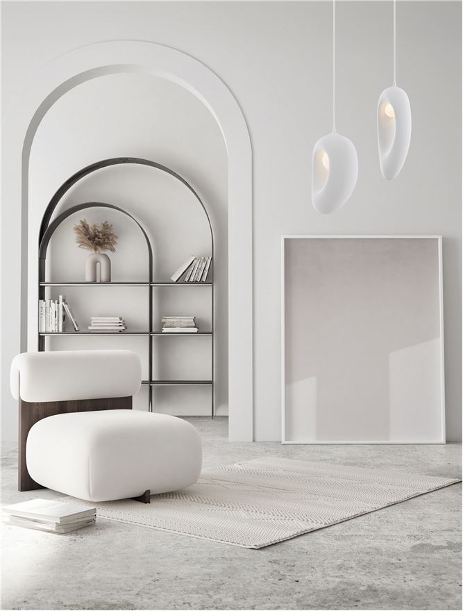 LEFKO este o combinație rafinată de simplitate și modernitate care impresionează prin subtilitatea și eleganța sa. Abajurul său cu formă asimetrică, realizat dintr-un material cu o textură delicată, mată, emană farmec natural, introducând o atmosferă caldă și confortabilă în interior. Culoarea albă universală și textura inspiratoare fac din această lampă un accesoriu atemporal care se potrivește armonios în diverse aranjamente, de la minimalist la japonez și scandinav.