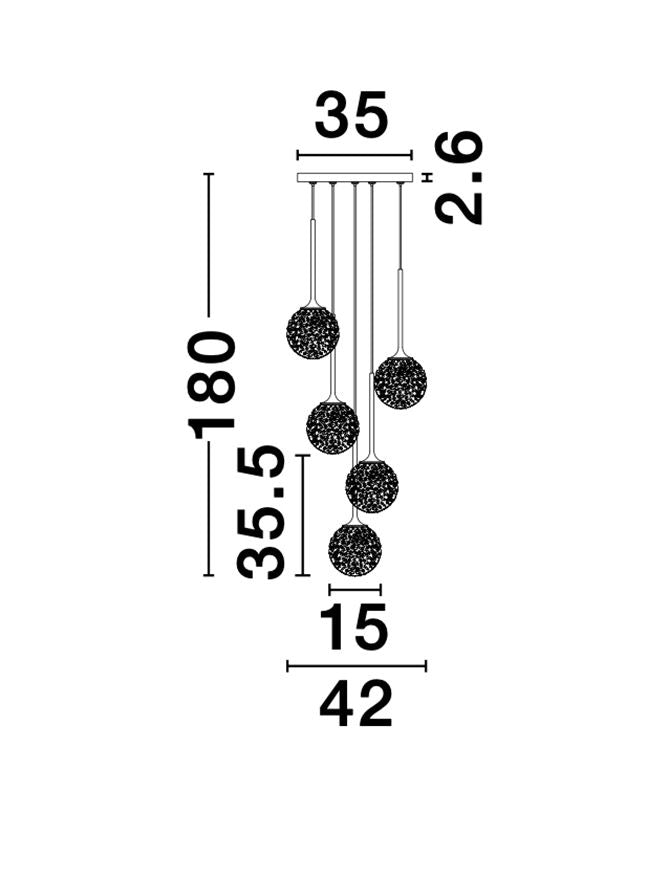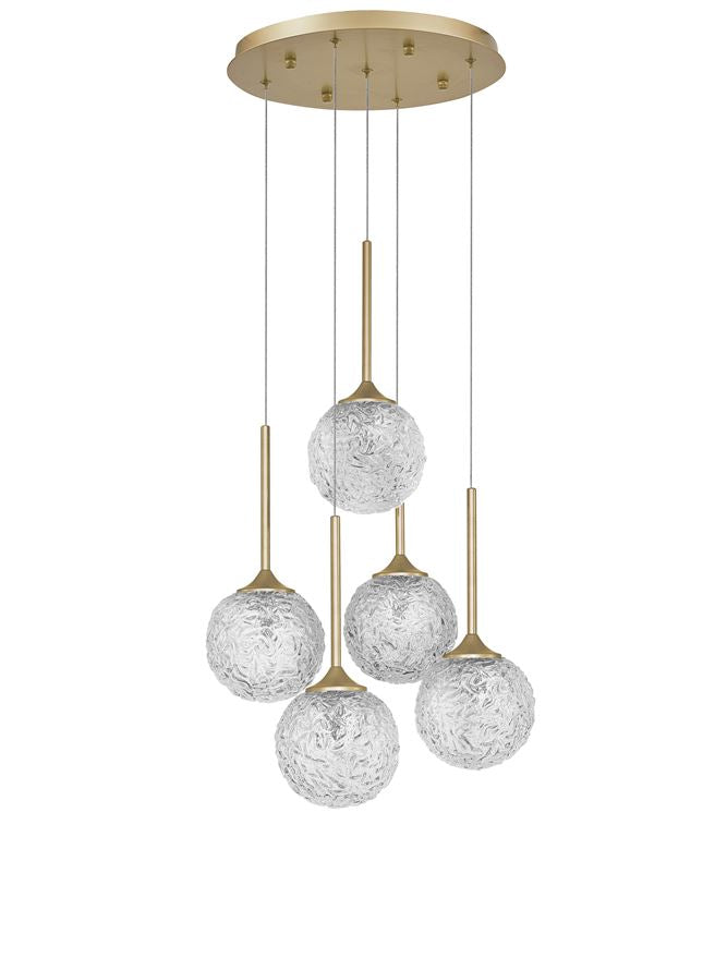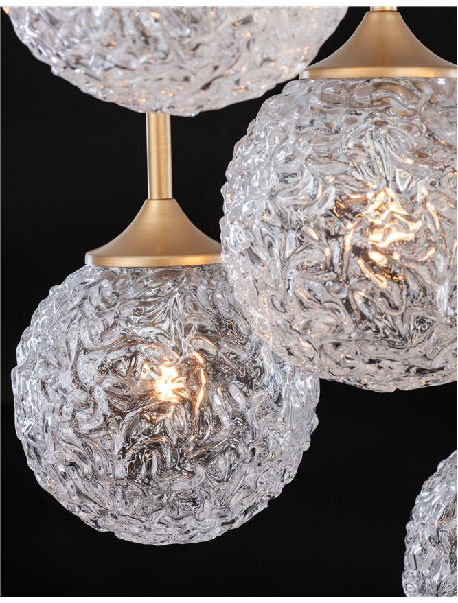 Lampa suspendata MIRANO Clear Structured Glass & Brushed Gold Steel LED G9 5x5 NOVA LUCE