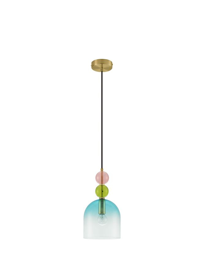Material: Metal auriu mat, sticlă lucioasă verde deschis, albastru și roz