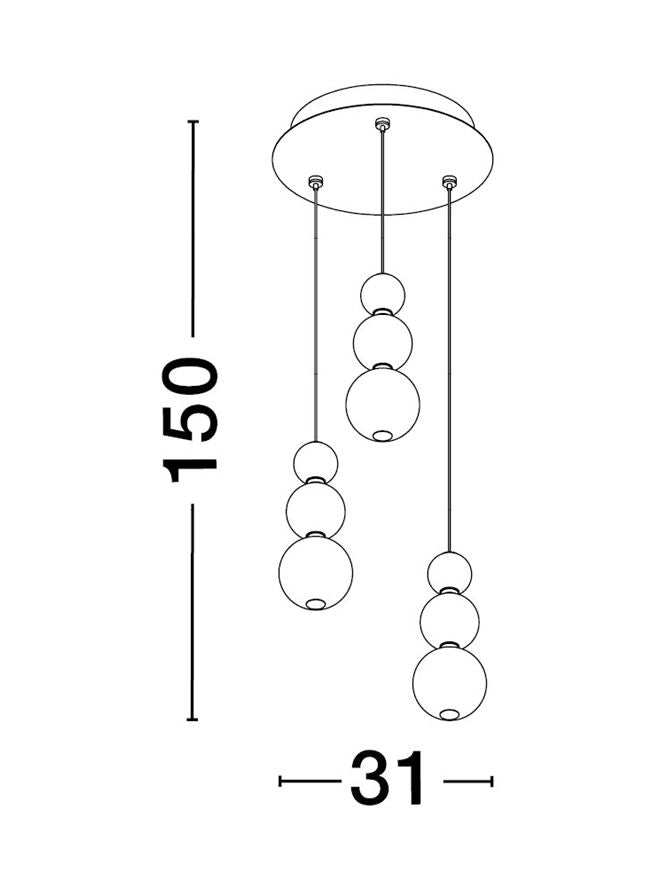 Lampa suspendata PERLA 3 Gold Metal & Opal Glass LED 23W NOVA LUCE