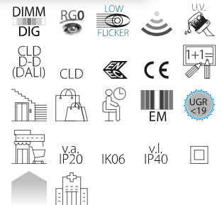 Panou led DALI, 830 Rodi UGR<19 3000K 39W 3722 lm pentru tavan fals 595x595mm