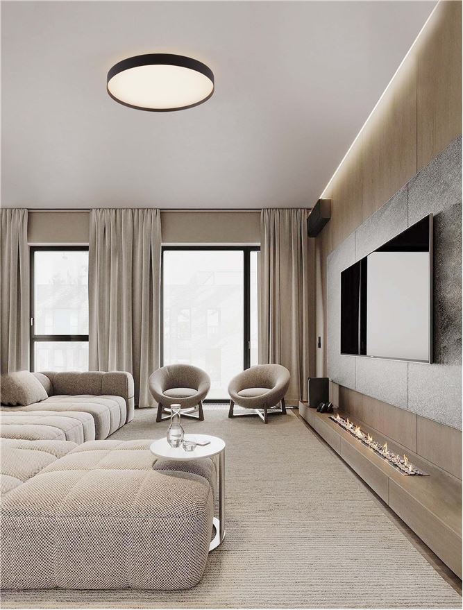 Plafoniera ROI Triac Dimmable Sandy Black Metal, Aluminium & Acrylic LED 48W 2700+3000K Diam: 50 cm Nova Luce